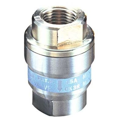 Compact all stainless steel air vent with “fail open” feature for steam, for vertical installation.